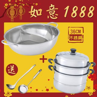 【省錢方法】【吉祥如意雙鍋4件組】鴛鴦鍋36公分+蒸鍋28公分(送湯勺漏勺)-熱門商品