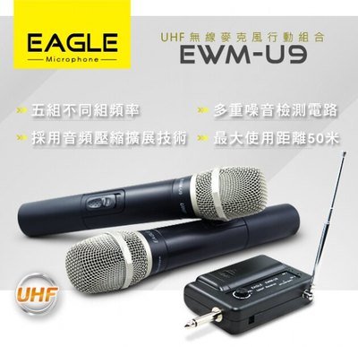 【實用商品推薦】EAGLE 專業級UHF無線麥克風組 EWM-U9-時尚商品