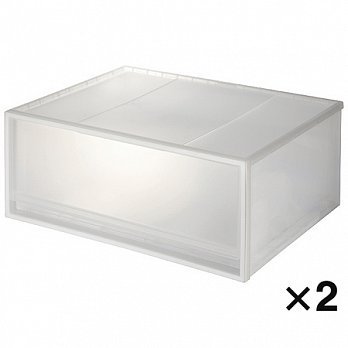 橫式的PP櫥箱,讓衣物可左右並列收納。可加裝輪子(另售)。內寸:寬49×深39.5×高19.5CM。 1470072667408 PP衣裝盒/橫式/大/2入 寬55×深44.5×高24CM |
