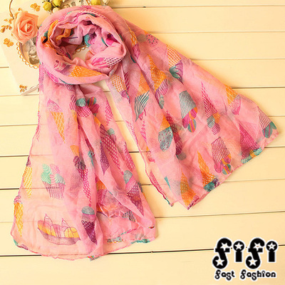僅此一檔 分享【FIFI飛時尚】冰淇淋圖樣雪紡絲巾 圍巾 防曬空調披肩(粉) 僅此一檔