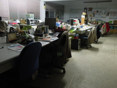 ※照片是昨晚下班時的辦公室,忽然覺得有一種迷人的氛圍,不過我的座位是在另一邊。