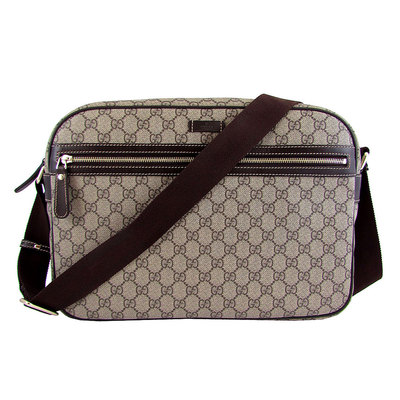 GUCCI GG PLUS PU防水材質拉鍊斜背包(卡其色/大)