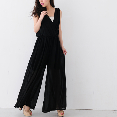 【SweetLove】極美焦點~柔感雪紡寬版褲管褲裙(淳黑)