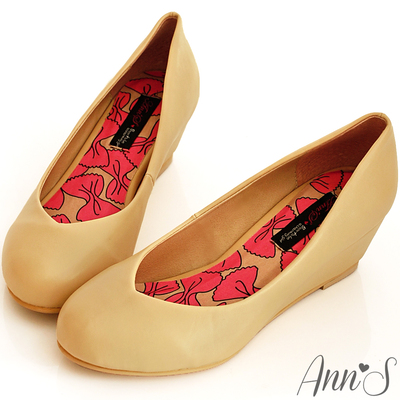 Ann'S簡約甜美.蝴蝶結小坡跟圓頭包鞋*米