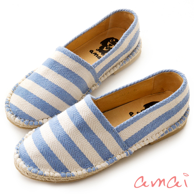 amai海軍風懶人樂福鞋?草編橫條紋?天空藍