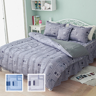 【程式方格】加大六件式舖棉兩用被床罩組(2色可選)