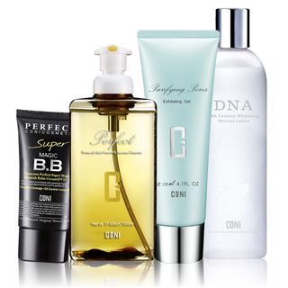 【CONI】美妍保濕潔顏油幕斯+超淨顏驅黑角質膠+防曬BB霜+肌鑰煥白賦活露(超值組合)