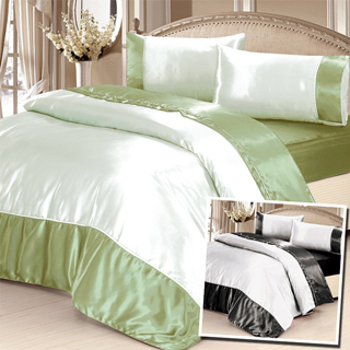 【極簡綠白】糖瓷絲緞雙人被套床包1+1超值組