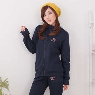 少女服裝品牌【衣心衣意中大尺碼】運動休閒~皇冠水鑽外套(黑-藍FR1A3519) 評比