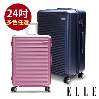 【超值推薦】【ELLE】裸鑽刻紋系列-24吋經典橫條紋霧面防刮行李箱(多色任選 EL31168)-快速到貨網拍