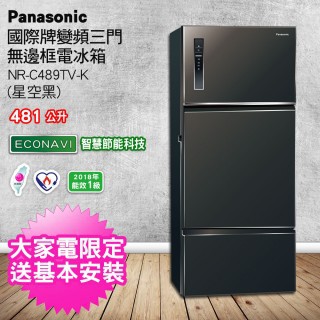 【熱銷排行榜】【Panasonic 國際牌】481L三門變頻冰箱(NR-C489TV-K)-本日刷卡購物折扣