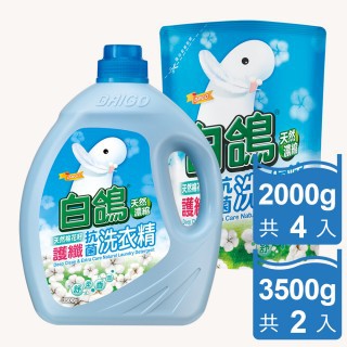 【滿額享優惠】【白鴿】天然濃縮抗菌洗衣精棉花籽護纖3500gx2罐+2000gx4包-本月優惠