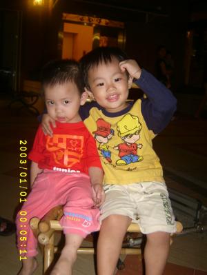 以前每個人都說:哇!你兒子好像你老公喔!好帥ㄟ~ 最近呢我老是覺得他越來越像我了...... 那是不是代表他變醜了?呵呵~人家我也不賴啊!!難兄難弟的第二代~加油!!真是父子情深啊......吃醋...