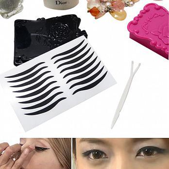 貝禮綺美妝☆日系貓眼款雙眼皮貼深邃加強版眼線貼(黑色)不反光煙燻款-超值80枚入贈Y型棒 ●搶鮮●