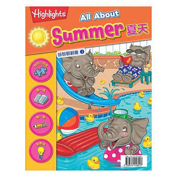 詳細資料ISBN:9789574456017 規格:平裝 / 64頁 / 21.4 X 27.8 CM / 普通級/ 全彩印刷 / 初版 出版地:台灣 語文:中英對照 內容簡介HIGHLIGHTS 2014最新系列 — 益智翻翻書 HIGHLIGHTS秉持著「寓教於樂」(FUN WITH A PURPOSE) 的理念,每次出版都充滿了有趣故事、挑戰十足的益智遊戲,以及趣味橫生的活動。 最新六冊益智翻翻書「ALL ABOUT系列」,以全新概念,將中英文讀本以二合一的方式呈現,內容包括精采的童謠故事、益智遊戲和活動,皆是圍繞著孩子喜歡的主題,讓人想一讀再讀,愛不釋手! 本系列書籍含六大學習主題: ‧春天 (ALL ABOUT SPRING):在這本關於春天的書裡面,你會發現鳥和蝴蝶、花和風箏、還有其他在春天綻放的東西。 ‧夏天 (ALL ABOUT SUMMER):這本關於夏天的書裡面,你會看到貝殼和沙、太陽眼鏡和涼鞋,還有其他使夏天有趣的東西。 ‧秋天 (ALL ABOUT FALL):在這本關於秋天的書裡,你會看到落葉與橡實、松鼠和稻草人,還有其他與秋天有關的種種事物。 ‧冬天 (ALL ABOUT WINTER):在這本關於冬天的書裡面,你會發現雪橇和雪圈、溜冰鞋和滑雪板,還有其他冬天的景物。 ‧書 (ALL ABOUT BOOKS):在這本關於書的書裡面,你會發現圖書館藏書、床邊故事以及充滿趣味的閱讀活動。 ‧寵物 (ALL ABOUT PETS):在這本關於寵物的書裡面,你會發現貓、狗、兔子、黃金鼠還有其他毛茸茸的可愛動物。產品特色: 1. 全書包含〈益智小遊戲〉、〈讀一讀〉、〈動一動〉、〈動動腦〉四大單元,可依照單元選擇主題,幫助孩子輕鬆進入喜愛的內容。書中每頁均有特別主題,配合生動的圖畫,提供更多的活動及故事讓小朋友探索、思考,訓練孩子更專注,大大提升學習能力。 2. 益智翻翻書採中英文二合一書籍設計,兼具加強小朋友中英文認字及閱讀能力,培養閱讀的興趣,學習從不同角度看事物,這些能力對於建立良好學習方式、發揮創意思考,都非常有幫助,切合家長需求。 3. 譯文優美:書中文字翻譯優美,可增加小朋友鑑賞文章及寫作思考的能力。 4. 知識小百科:針對各書主題設計科學小百科單元,藉由自然中常見的事物,可以讓小朋友一同思考關於生活中的有趣科學現象,讓讀者明瞭日常生活常碰到的小知識。 5. 多元學習:除文章閱讀 (讀一讀單元)、動手作 (動一動單元)、益智小遊戲外,每本全彩圖書皆提供小知識和自然中的科學,讓閱讀不只是閱讀,同時學習各類知識,也學到正確且道地的英文。 6. 寓教於樂:本系列書籍將於今年底推出APP程式下載,讀者只要指尖輕點,便能輕鬆體驗益智遊戲與互動學習的樂趣! 7. 附有ANSWERS解答。 |
