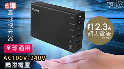 .商品名稱:aibo Q369 QC3.0 5V/9V/12V 6埠高速快充器(支援Type-C充電)