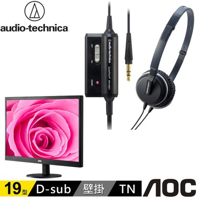 【鐵三角】ATH-ANC1 主動式抗噪耳罩式耳機(含飛機專用接頭)+【AOC】E970SWN 19型窄邊框液晶螢幕 真的超值!