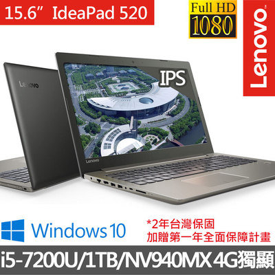 【2017熱門商品】【Lenovo】IdeaPad 520 15.6吋FHD筆電(i5-7200U-4G-1TB-NV 940MX 4G-Win10)