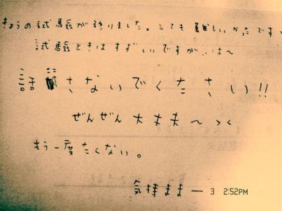 考完了 哈哈 好可怕 聽說成績三月才會出來 我覺得好像沒中== 第一糖簡單 第二糖聽解 我都瞎猜 第三糖也是後面都瞎猜 我看我完了我 哈哈哈 管他管他管他
