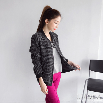 服裝推薦OB嚴選-0217新品 獨領風格~撞色滾邊小格紋粗花呢拉鍊式外套-2色