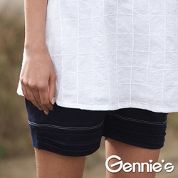 【Gennie’s奇妮】個性風格褶飾壓線孕婦短褲-深藍(G4X22)