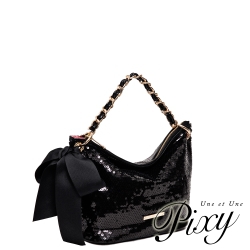 Pixy - Sequins lover緞帶小手提包 - 黑