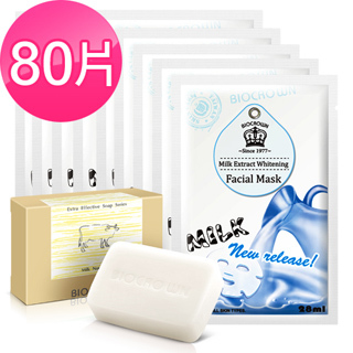 【BIOCROWN百匡】牛奶嫩膚美白面膜80片超值組(買再送手工皂)