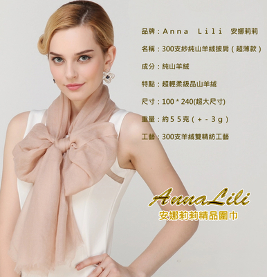 前幾天在逛街的時候看到【Anna Lili】100%cashmere 300支紗頂級純羊絨平紋披肩-圍巾(駝色) 覺得很心動而且正打算買【Anna Lili】100%cashmere 300支紗頂級純羊絨平紋披肩-圍巾(駝色)