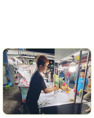 晚餐後回到陽東鎮上鬧區,來去逛富國夜市。 夜市入口處算是車水馬龍的路口,要順著號誌過馬路。這裡的夜市有許多花生、海鮮熱炒、冰品攤位,也有很多店員來拉客試吃,因為已經用過晚餐了,就吃碗炒冰...