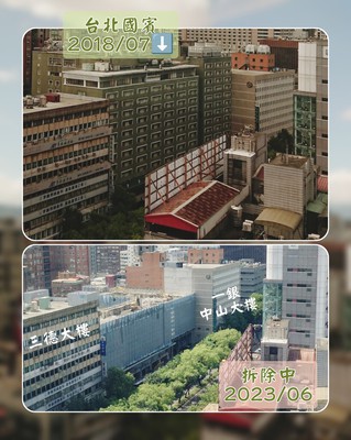 城市的演化一直在進行中,台北老牌五星級飯店國賓飯店正在拆除中。原本國賓飯店是比兩旁大樓還高,如今正在拆除...