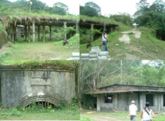 蠻怕這種荒涼的地方,而且還剛好是七月半,不過很想看看裡面有什麼東西;大門對面是雜草叢生的廢棄建築,從窗戶看進去只見屋後一大片樹林的暗綠,左手邊先經過石底大斜坑,入口已經用鐵欄杆封起來了,大概是下雨沖積堆在坑口的土,把洞口埋了一半,看進去是一片野蔓;再過去的角落是一座像走廊的建築和一間房子,只有熊爺好奇地過去查看,我們則是立在一旁不敢過去。