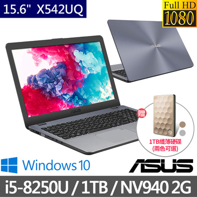 【折價券代碼】【ASUS】X542UQ 15.6吋FHD筆電-霧面灰(i5-8250U-4G-1TB-NV 940MX 2G-W10)+1TB纖薄硬碟 限時折扣