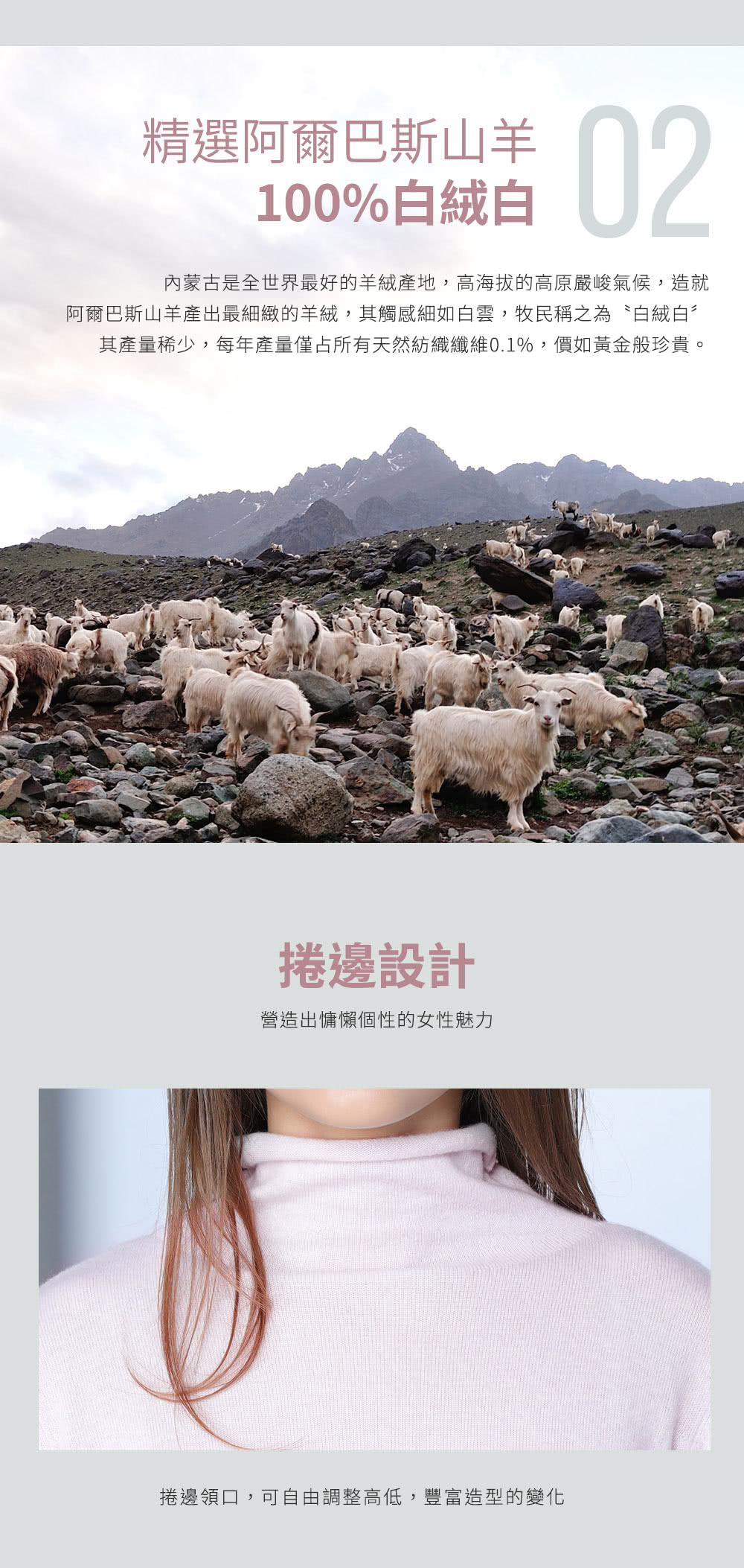 • 羊絨親膚不刺癢