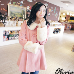 【Olivia】可拆毛領兩穿毛料洋裝外套(共二色)