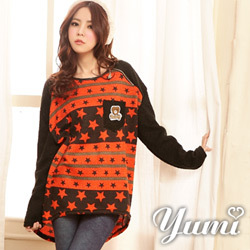 【YUMI】MIX流行‧拉鍊星星針織毛料長版上衣