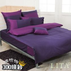LITA麗塔(魔術方塊-藍苺x桑椹)雙人加大四件式純棉薄被套床包組