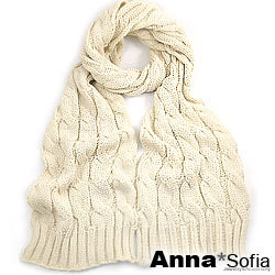 【AnnaSofia】麻花厚軟織 超長圍巾(米杏)