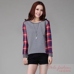 【朵菈時尚】拼接撞格紋風格上衣-紅藍格-中大尺碼,龍將