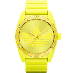 adidas 黃金年代 時尚金框三葉草橡膠腕錶-螢光黃色 /40mm