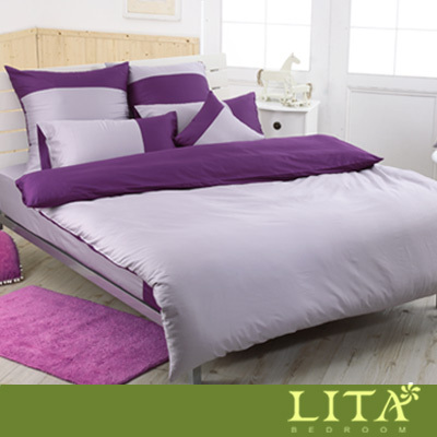 LITA麗塔(魔術方塊-礦紫x桑椹)單人三件式純棉兩用被床包組