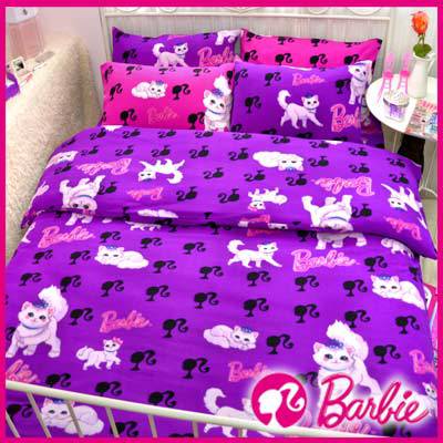 【Barbie】波斯公主貓- 雪芙絨單人床包被套三件組Persian Princes俏麗紫