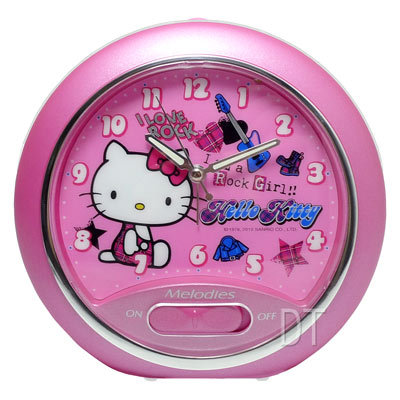 ★超可愛搖滾風KITTY貓.陪伴大家帶來歡樂的每一天★ Hello Kitty 淘氣搖滾超靜音貪睡鬧鐘 JM-4424KT,具有八首優美和弦鈴聲設計,讓每天的鈴聲都變化不同,起床時不再感到煩悶;關掉響鈴後還會向您問候一聲〝哦嗨唷〞,讓每一天早晨都充滿活力!>小夜燈照明裝置,在夜晚時或燈光不足時也能清楚看到時間。採用連續掃描機芯設計,秒針超靜音,沒有滴答聲影響到你的休息時間。三麗鷗授權,台灣製造,品質NO.1,讓喜愛HELLO KITTY的粉絲們都愛不釋手!