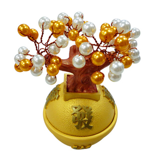 這一款聚寶盆外形以福袋,搭配珍珠招財樹,象徵招進財富、取之不盡。可開啟,置入寶物,替您守住錢財。