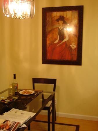 The rest of the area, which is all the bedroom walls are painted in apple green. Color actually turn...
