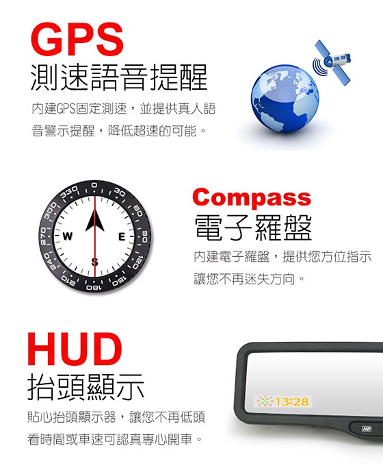 ●搭配GPS測速語音提醒,內建電子羅盤不怕迷失方向