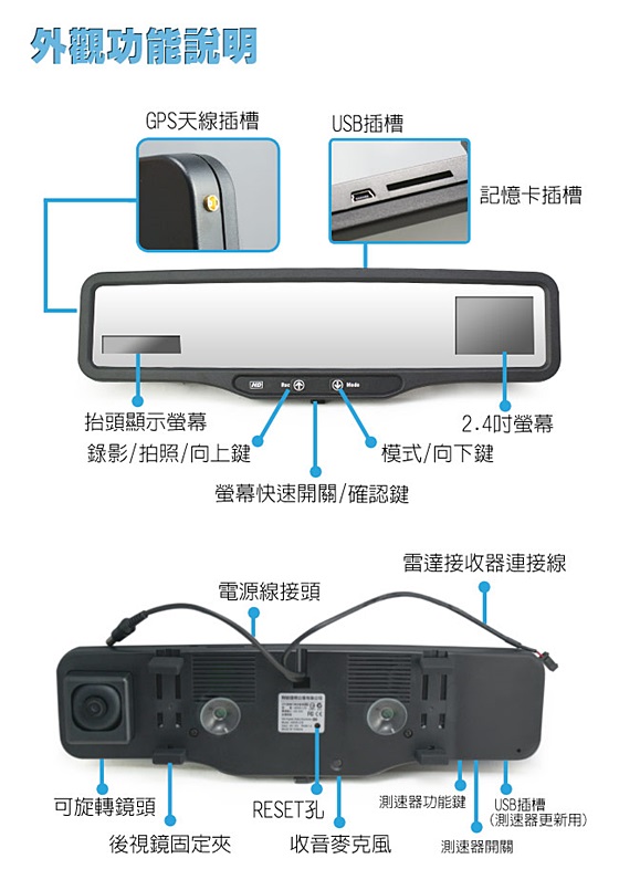 品名:CARSCAM行車王-HDVR-210 FHD 1080P後視鏡型測速行車記錄器