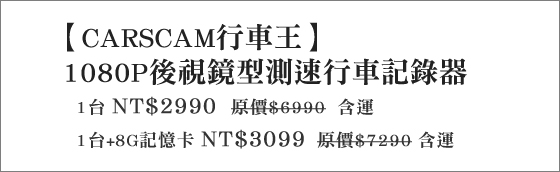 商品訊息簡述: 只要2990元起(含運)即可購得【CARSCAM行車王】原價最高7290元1080P後視鏡型測速行車記錄器:(A)1台/(B)1台+8G記憶卡。