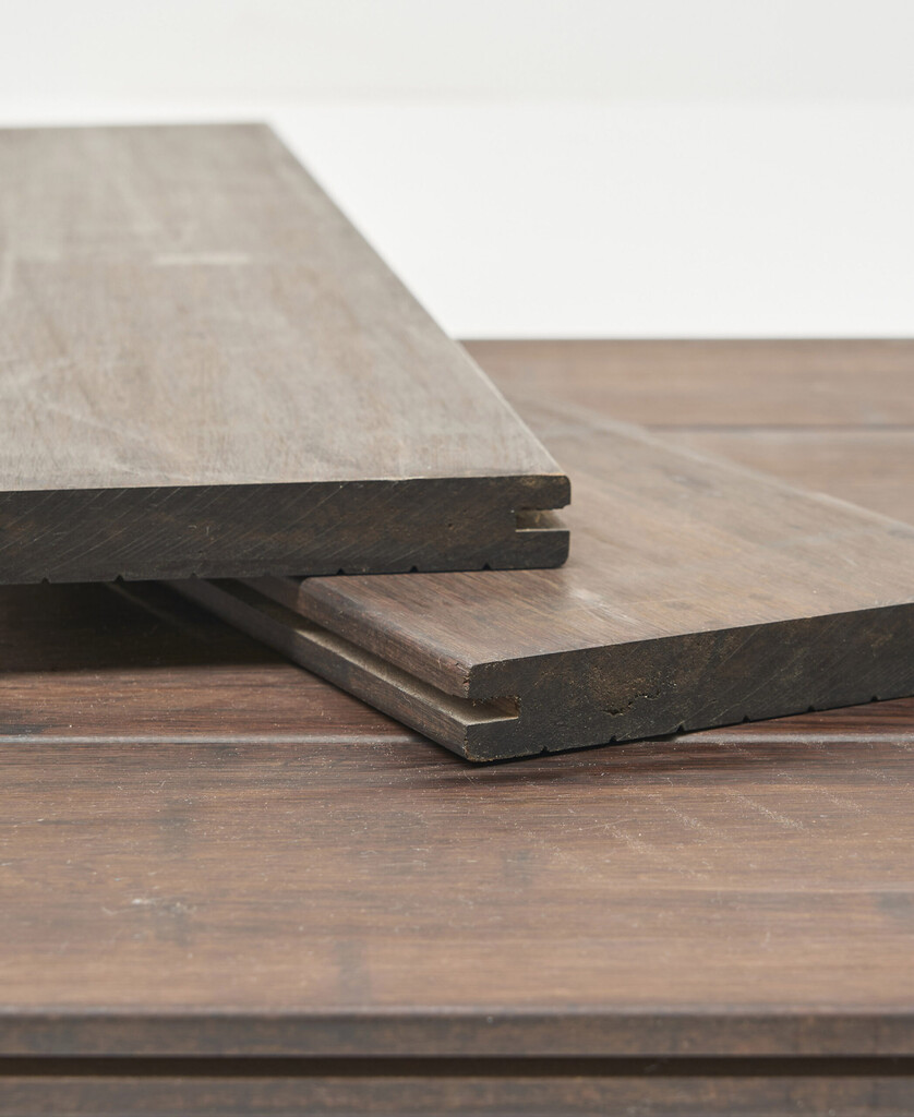 Bamboo: Bamboo decking requires maintenance, aging and fading to a light grey color over time . To maintain warranty validity, boards must be end-sealed and finished with penetrating oils annually . Regular cleaning is needed to prevent buildup that can cause damage .