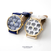 異國風童趣可愛大象皮革手錶
