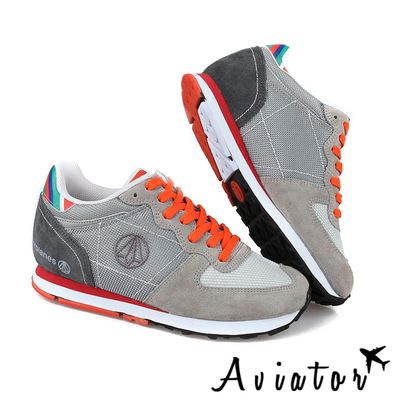 Aviator*韓國paperplanes-彩紅撞色增高慢跑鞋-灰